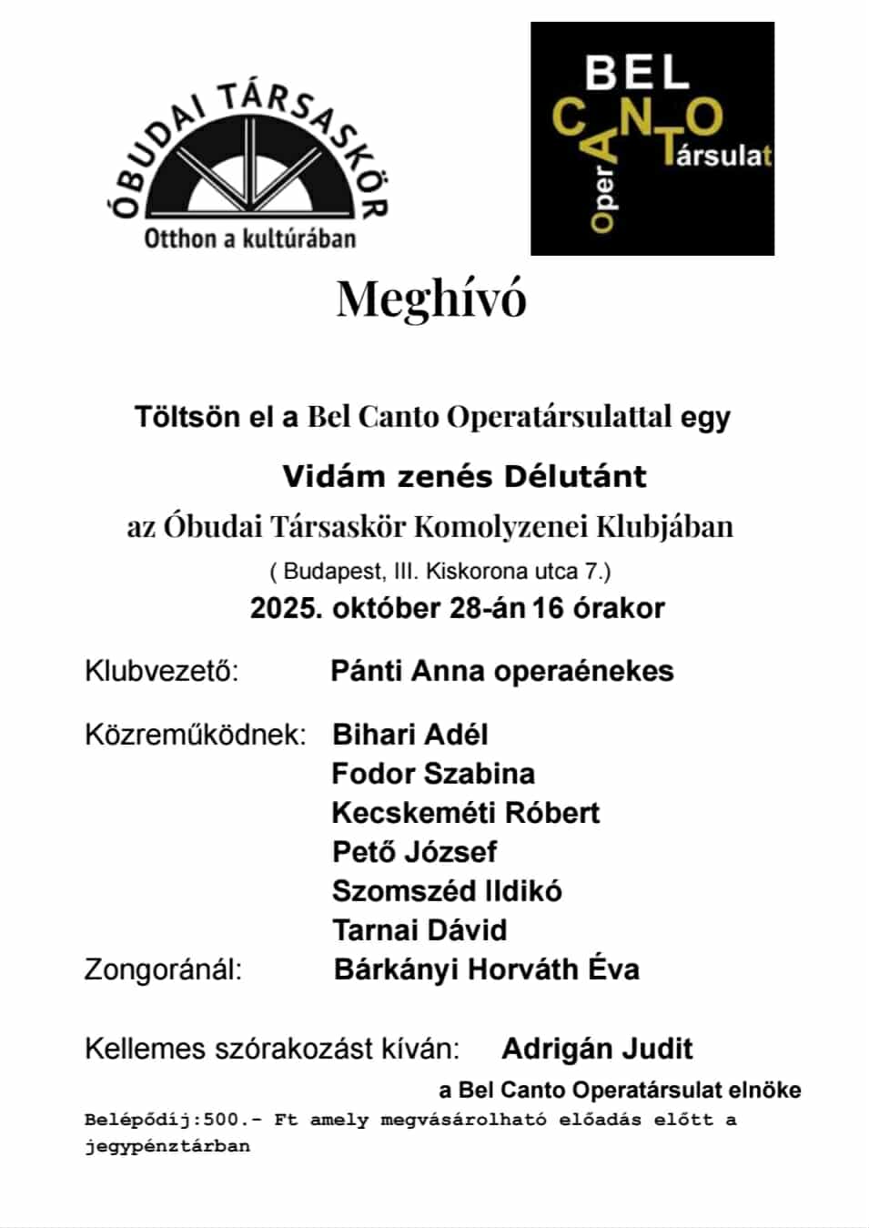 Zenés műsor a Zenebarátok Klubja program keretein belül